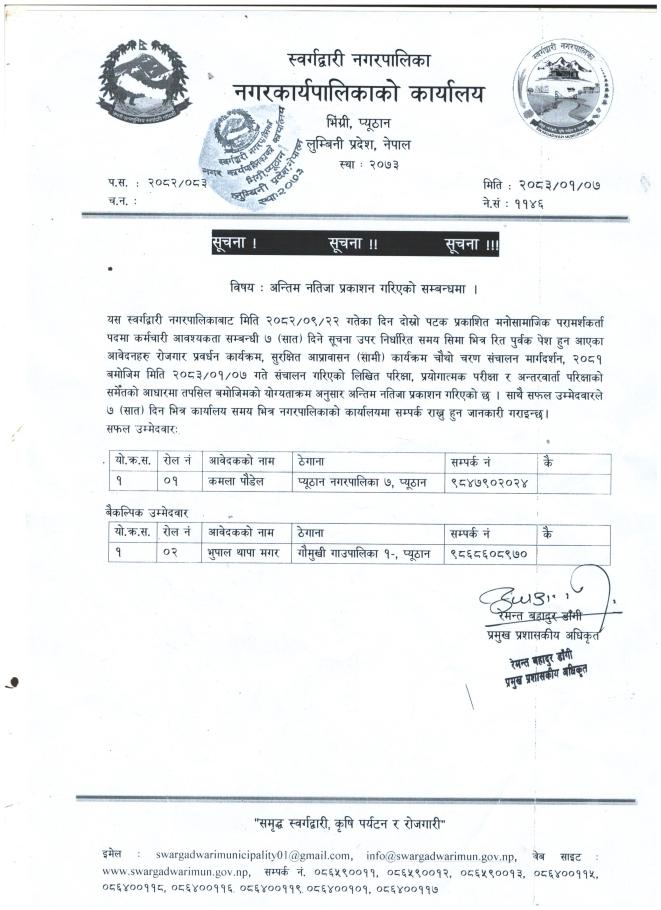 अन्तिम नतिजा प्रकाशन गरिएको सम्बन्धमा