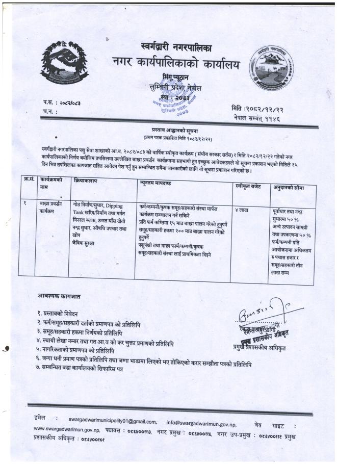 बाख्रा प्रवर्धन कार्यक्रमको प्रस्ताब पेश गर्ने सम्बन्धी सूचना