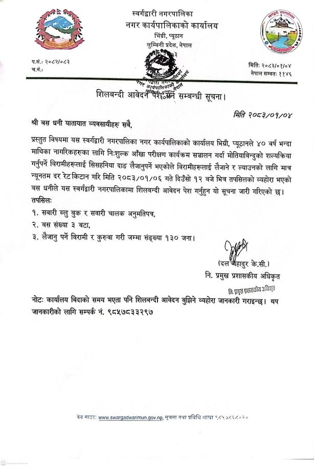 शिलबन्दी माग सम्बन्धी सूचना