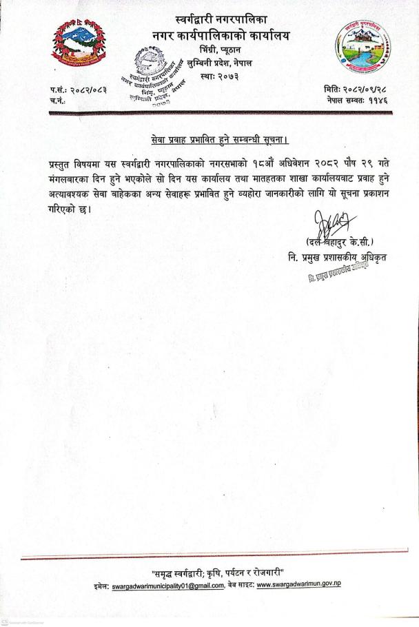 सेवा प्रवाहित हुने सम्बन्धी सूचना
