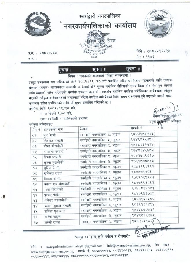 गणकको अन्तरवार्ता परिक्षा सम्बन्धी सूचना