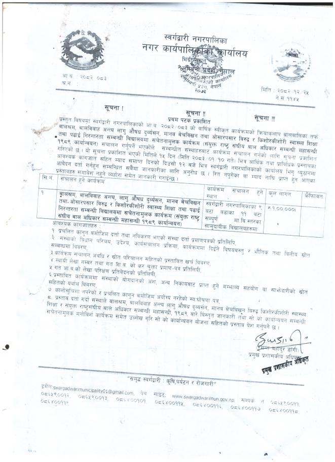 प्रस्ताब आब्हान सम्बन्धी सूचना