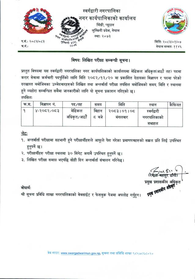 लिखित परिक्षा सम्बन्धी सूचना